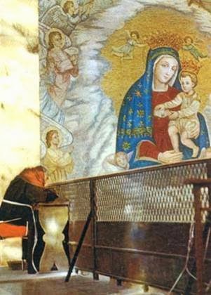 a extender un pañuelo ante sí, sobre el piso del santuario. Como con San Francisco,