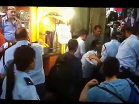 Pascua ortodoxa. Muestra como la policía israelí ataca brutalmente a un viejo
